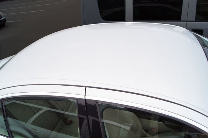雹害の車もデントリペアで修復できます。内貼りの脱着などかなり手間のかかるパネルで作業時間は比較的長くかかります。板金塗装の場合、補修歴や事故歴がついてしまう部分ですのでデントリペアはとても有効な修復手段です。