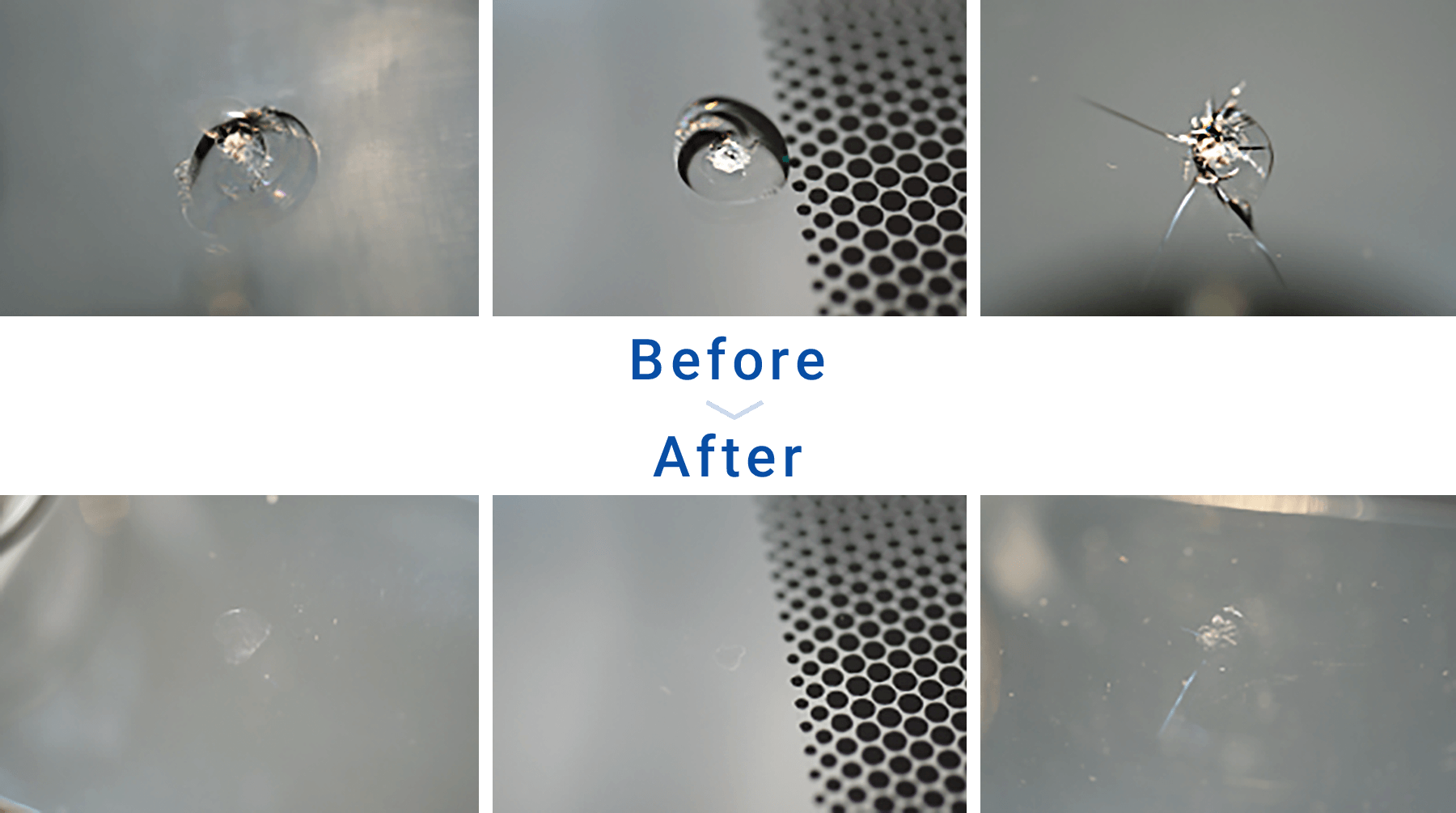 ※ガラスにヒビ割れが出来てから、時間が経てばそれだけ割れた部分からゴミや塵が入ってきます。 出来るだけ早めの修復をオススメしますが、それまでヒビ内部にゴミや塵などの異物が入らないように傷口はテープなどでふさいでください。